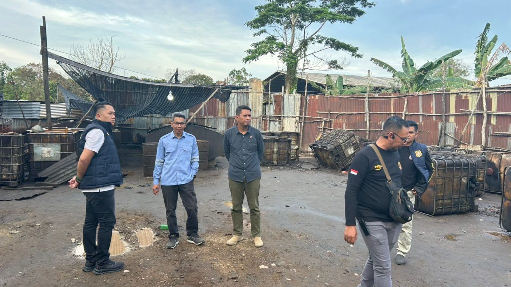 Petugas Sat Reskrim Polresta Jambi bersama Satpol PP melakukan pengecekan lokasi gudang yang diduga ilegal di wilayah Kota Jambi, Jumat (27/2/2026).
