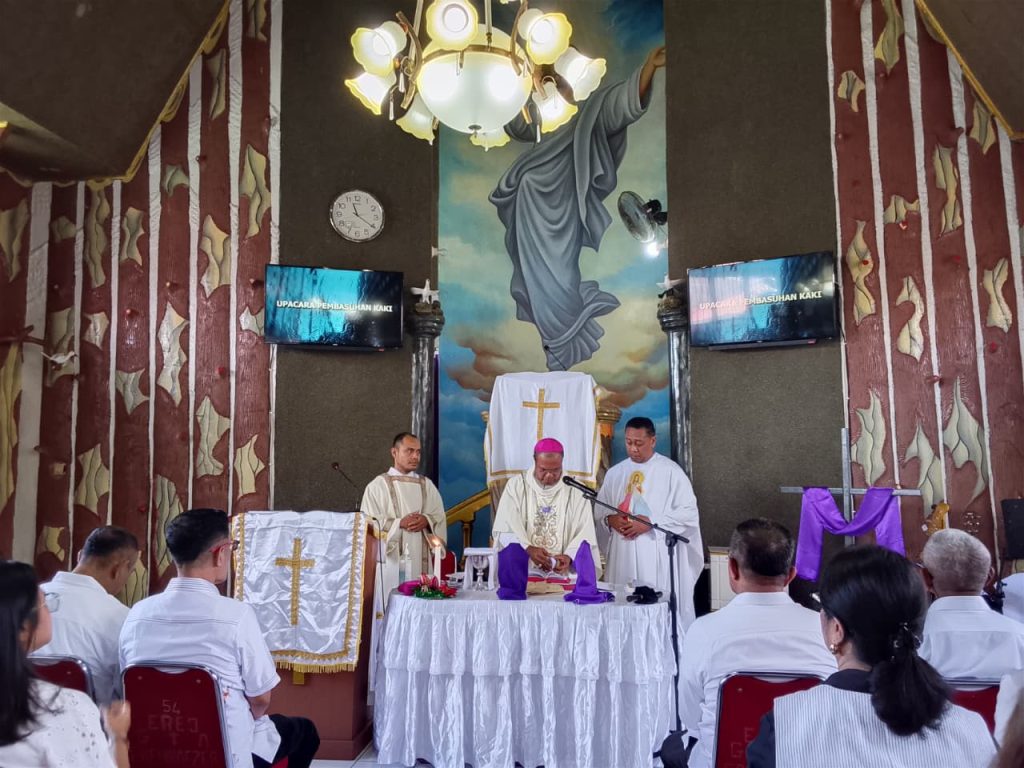 Jurnal1jambi.com,- Rumah Tahanan Negara (Rutan) Kelas IIA Ambon menggelar Ibadah Ekaristi Kamis Putih pada 02/04/2026 sebagai bagian dari pembinaan rohani bagi warga binaan beragama Katolik. Perayaan yang dipimpin Uskup Mgr. Seno Ngutra ini menegaskan bahwa ruang pemasyarakatan tidak hanya berbicara tentang pembatasan kebebasan, tetapi juga tentang pemulihan nilai kemanusiaan.