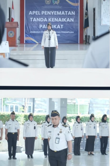 Jurnal1jambi.com,- Sebanyak 35 Pegawai Negeri Sipil (PNS) angkatan 2017 di Lembaga Pemasyarakatan Perempuan Jambi resmi menerima kenaikan pangkat dalam sebuah upacara yang digelar di halaman Lapas Perempuan Jambi, Kamis 02/04/2026. Prosesi penyematan tanda pangkat tersebut dipimpin langsung oleh Kepala Lapas Perempuan Jambi dan berlangsung khidmat di hadapan jajaran pegawai serta pejabat struktural.